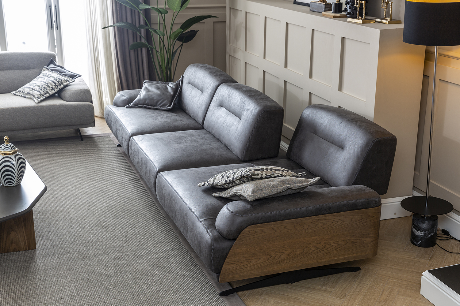 Prin simpla sa prezenta in designul canapelelor, lemnul este un finisaj cu aspect elegant, care va contribui vizual la crearea unui peisaj modern conturat printr-o atmosfera calda